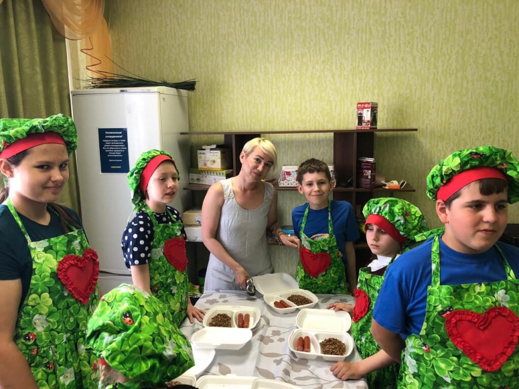 Ребята готовили обед словно пищу полевой кухни. Правда, пока мы заменили тушенку сосисками. Но совместно уже идем к тому, что наши подопечные дети смогут самостоятельно приготовить полноценный обед для себя, а может и для всей семьи.
