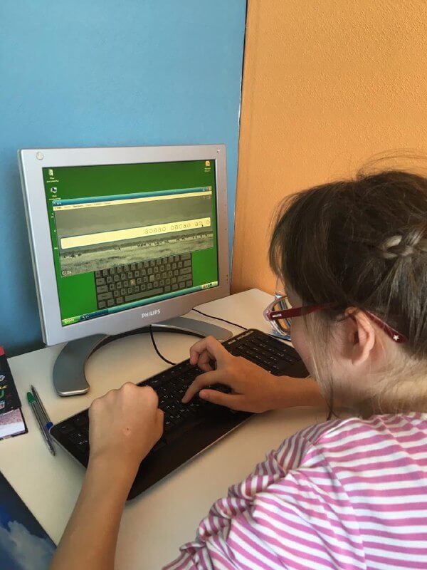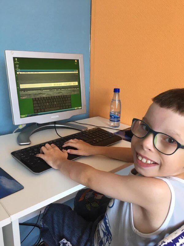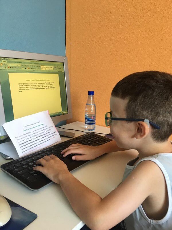 А вот и первопроходцы групповых занятий «Компьютерная грамотность» — Андрей и Катя. Они осваивают навыки «слепой печати» и работу в стандартном текстовом редакторе.