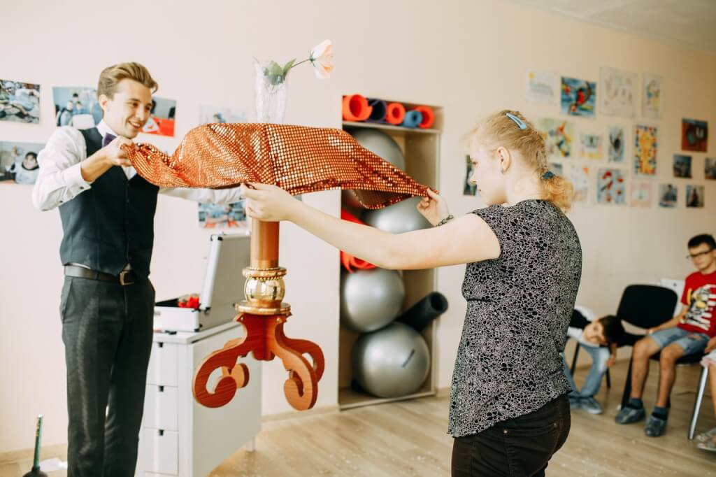 Дмитрий покорил ребят фокусами и даже, приоткрыл завесу тайны для них