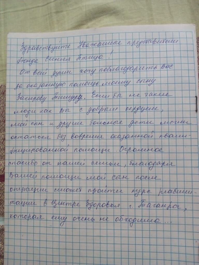 Мы говорим большое спасибо ПАО Ростелеком за то, что оплатили реабилитацию для Тимура суммой в 120.000. Вы — ощутимая поддержка в опора.
