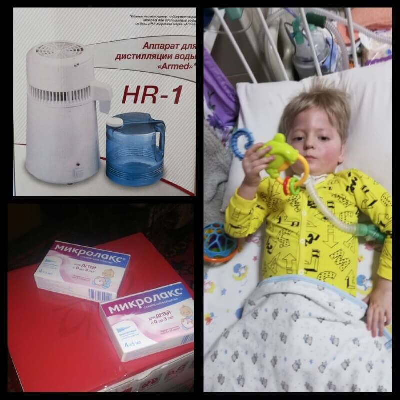 Поэтому, общими с вами усилиями, мы приобрели и передали для него ингалятор с дистиллятором воды, который поможет мальчику усваивать необходимые вещества.