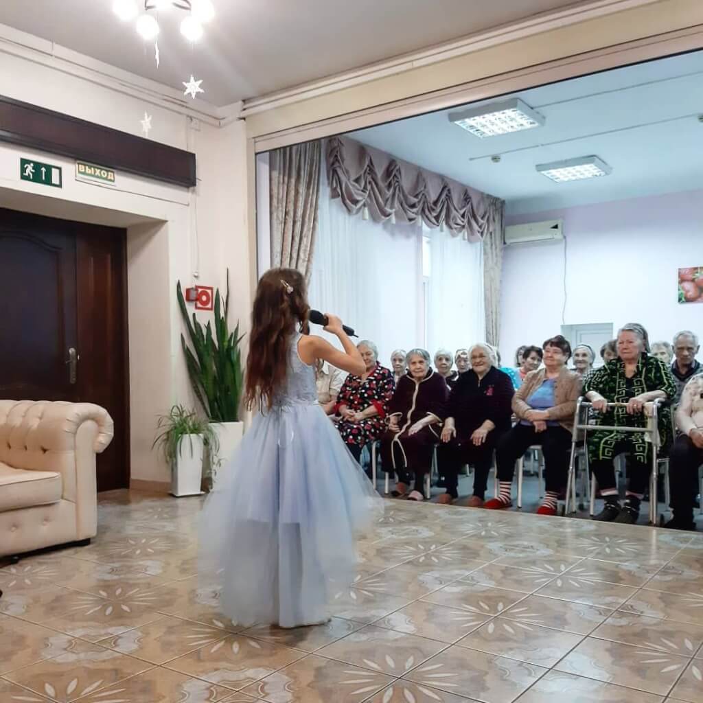 По традиции наши волонтёры и талантливые малыши из «АРТИСТ» радовали бабушек и дедушек творческими номерами, пели песни, танцевали и рассказывали трогательные стихи.
