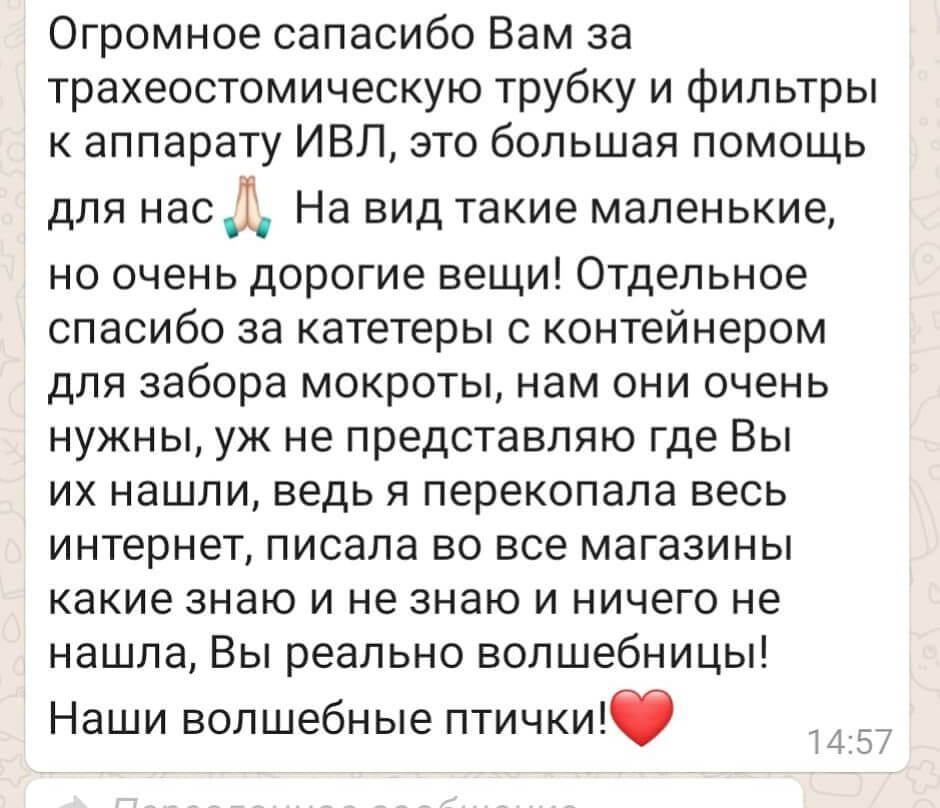Левченко Максиму, Беловой Вике, Огинскому Юре и Моисееву Радомиру передали катетеры для сбора мокроты, которые сложно приобрести самостоятельно. Максиму вместе с катетерами привезли трахеостомическую трубку. Для Ксюши Роот приобрели и доставили дорогостоящие медикаменты.