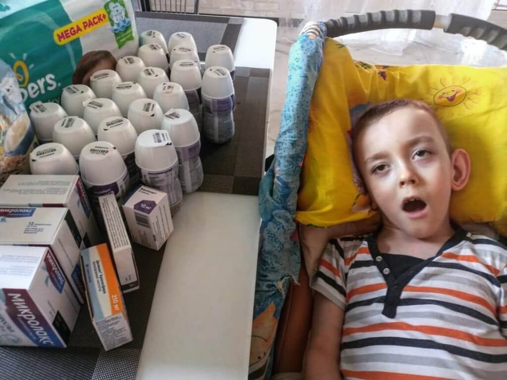 Мы уже передали маме мальчика памперсы, специальное питание и медикаменты. Для семьи это огромная помощь: мама Оксана воспитывает двоих детей одна, она ни на минуту не отходит от тяжелобольного сына.