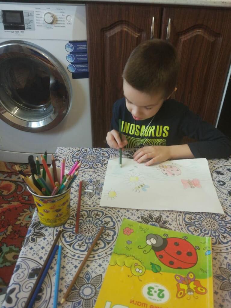 Во-вторых, творите шедевры! Карандашами я нарисовал очень милых насекомых. Я не забываю и про упражнения для мелкой моторики.