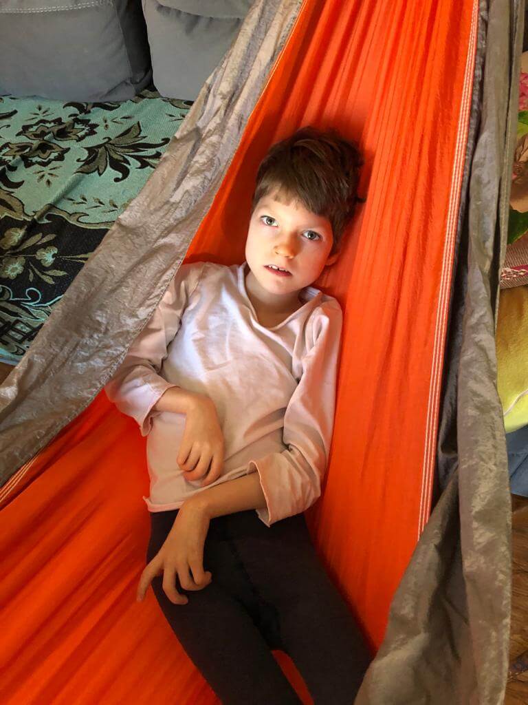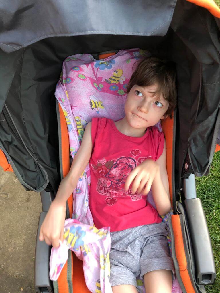 «У Даяночки постоянно идут судороги, которые по мере роста все время видоизменяются. Из-за приступов нарушается глотательный рефлекс, пропадает кашлевой рефлекс – в итоге бронхиты и пневмонии. В руки Даяночка ничего не берет после комы, не говорит, не плачет, на ноги опирается на очень короткий промежуток времени, в основном подгибает под себя. Из-за спастики идет деформация грудной клетки, искривление позвоночника и кривошея.»