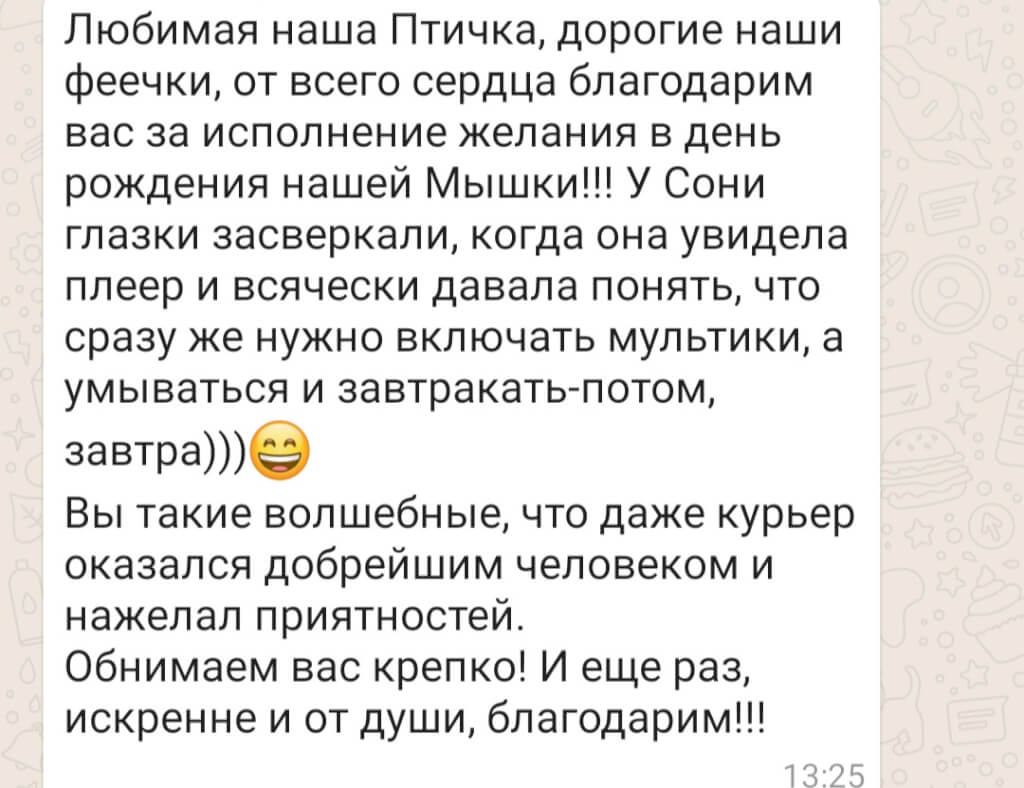 До последнего никто не откликался на наш призыв, и мы не знали, сможем ли поздравить именинницу. На свой страх и риск, нам пришлось задействовать средства, предназначенные совершенно для другого целевого использования. Через несколько дней волшебным образом появился благотворитель и покрыл все расходы (здесь мы выдохнули и радовались не меньше Сони)!