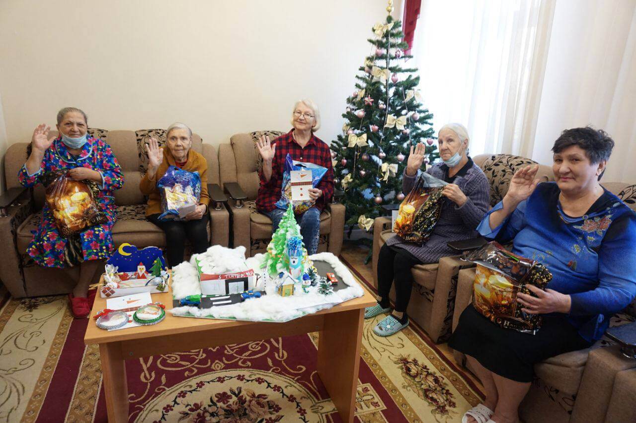 Благодаря вашей поддержке мы собрали 35 праздничных наборов с приятными и полезными подарками для наших любимых старичков из приюта. Одинокие бабули и дедули теперь в теплых носочках, обеспеченные средствами гигиены, смакуют сладости, показывают друг другу новые красочные полотенца и не нарадуются детским поделкам!