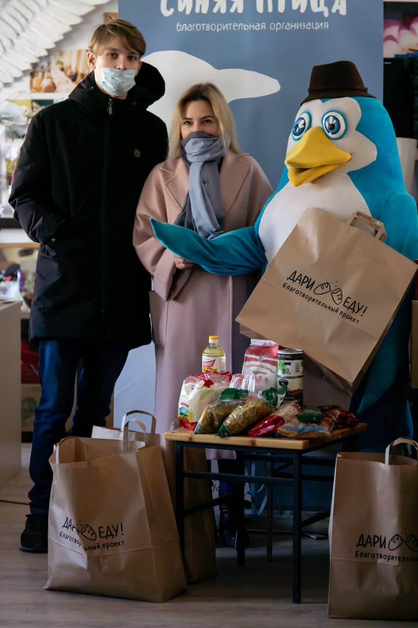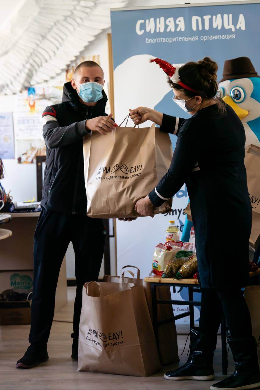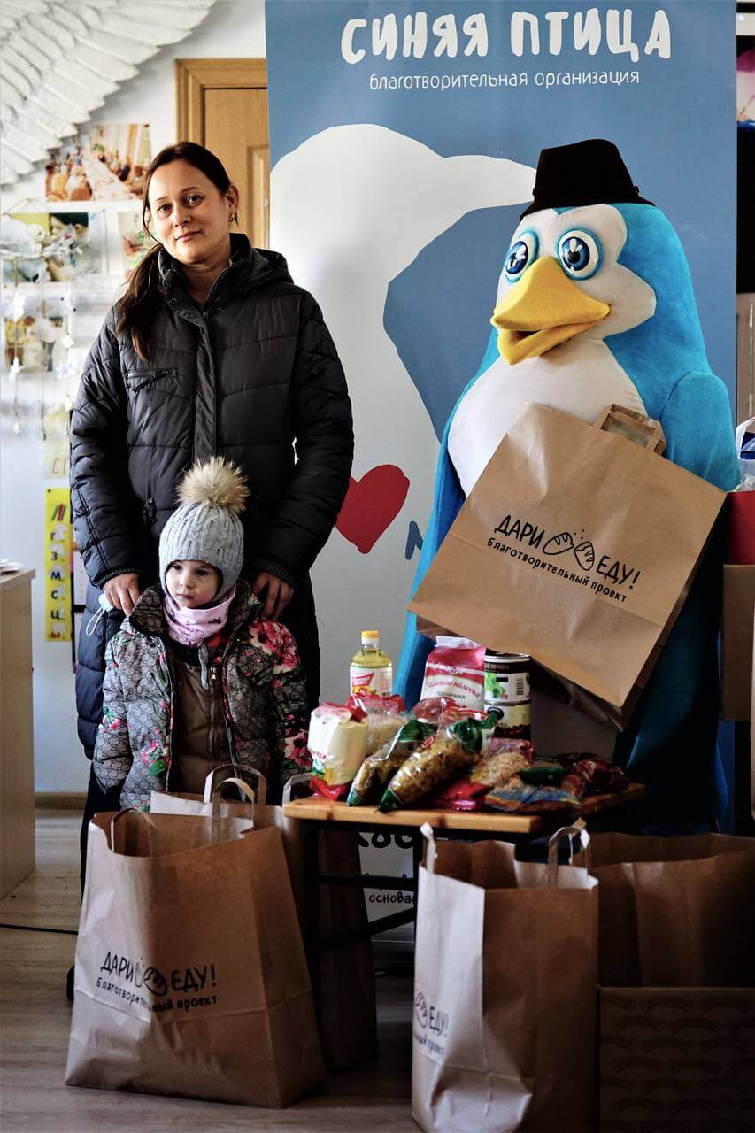 Перед Новым годом «Синяя птица» вместе с проектом «Дари еду» раздали целую ТОННУ продуктов питания!