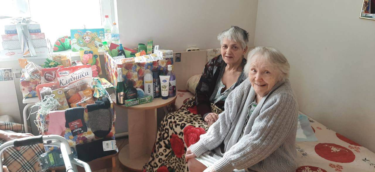 Кроме индивидуальных подарков в «Берег» мы передали дезинфицирующие средства, перчатки и печатную продукцию (спасибо ООО «Алимпис» и «Новости прессы в Оренбуржье»). Как же радовались такому вниманию бабушки и дедушки!