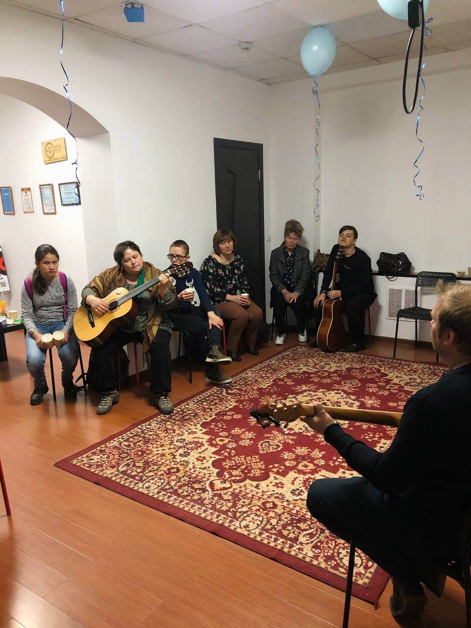 И такой, в котором участвуют все — и музыканты, и дети, и родители! Тем более, многие из наших подопечных занимаются музыкой, и тоже принесли с собой гитары!