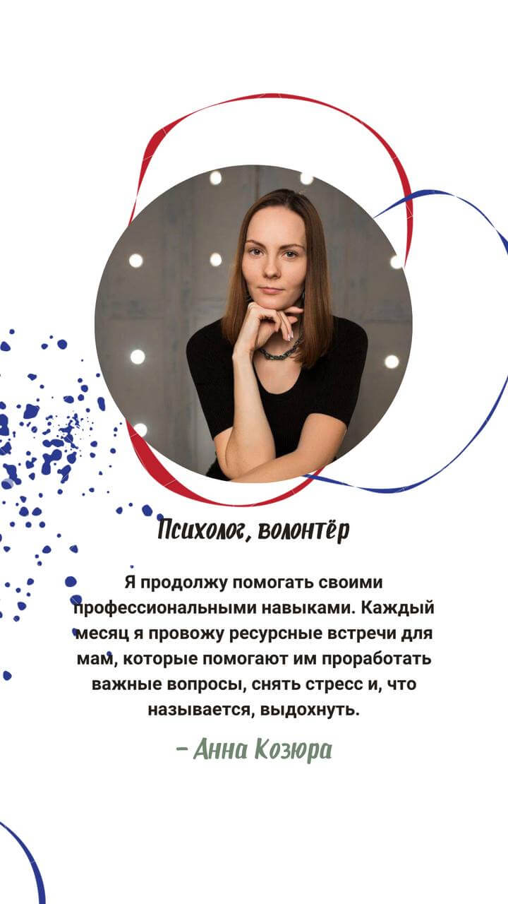 Приносят подгузники (s,m,l) и специальное питание («Малоежка», «Клинутрен Джуниор» и т.д.) к нам в офис, а мы передаём нуждающимся семьям.