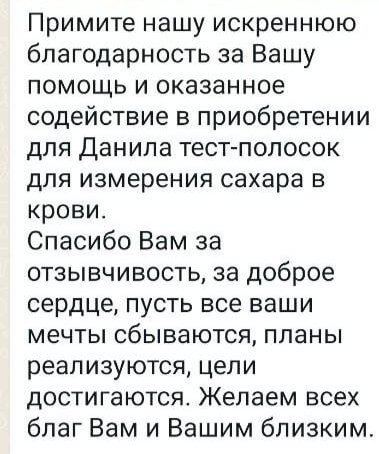 Друзья, мы с вами помогли нашему подопечному подростку Данилу в очень важном деле. Мы поддержали в приобретении тест-полосок для измерения сахара в крови на долгий период!