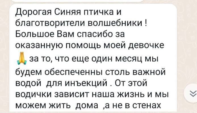 С вашей невероятно быстрой помощью со сбором средств, мы нашли остатки на складах по всей России и успели их выкупить, но этого хватит совсем на короткий срок. Посоветовавшись с врачами и родителями, мы нашли выход на ближайшее время и закупили воду для инъекций.