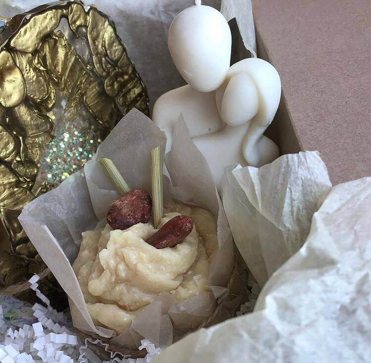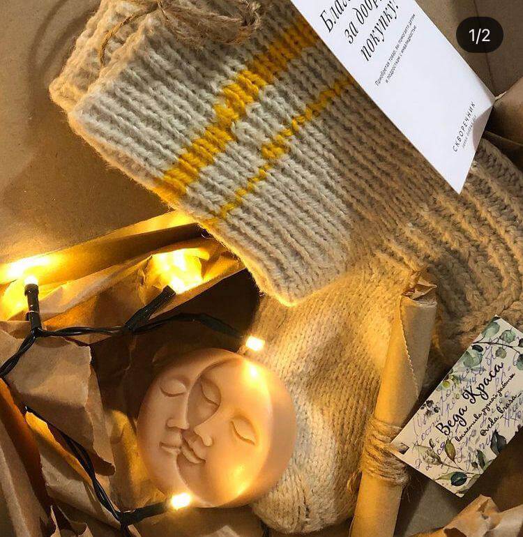 1. Вязанные носочки ручной работы, свеча «ДеньНочь», сыворотка для ресниц и бровей