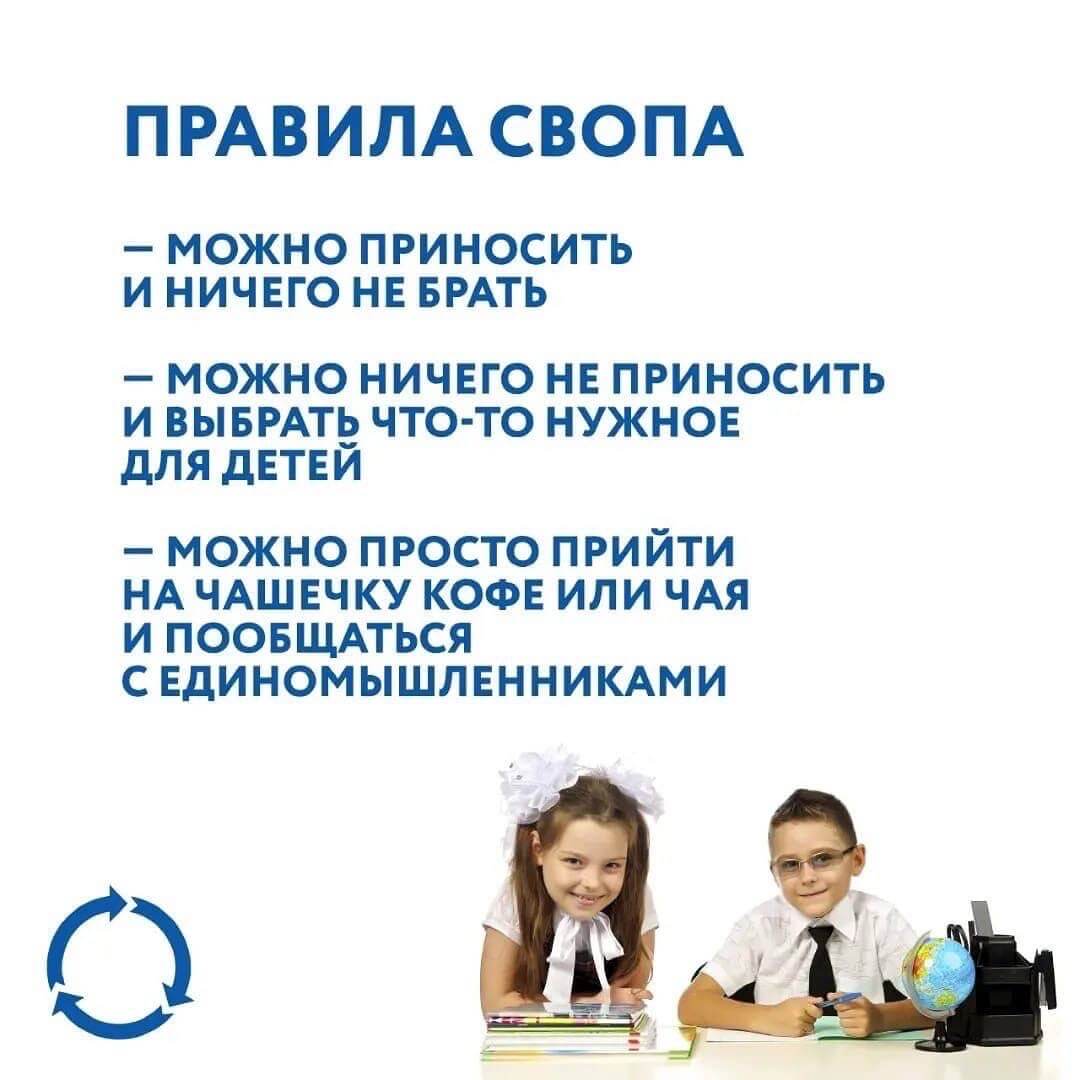 Смотрите программу и правила свопа ниже: Оставшиеся от свопа вещи передадут нам, благотворительный организации «Синяя птица».