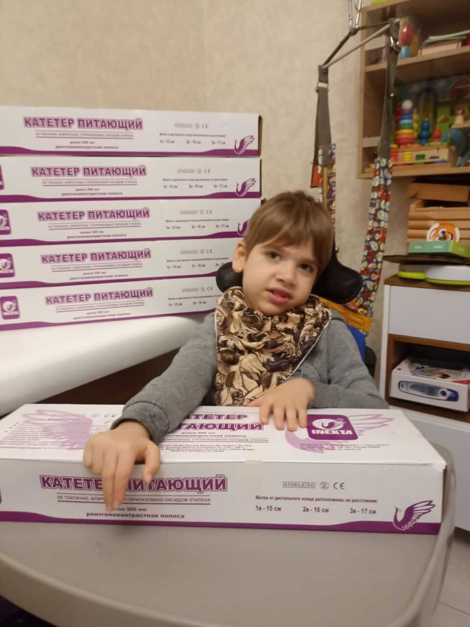 Зондами для питания, аспирационными катетерами и спец. питанием в короткие сроки были обеспечены восемь наших птенцов. Подгузники разных размеров получили 18 детей.