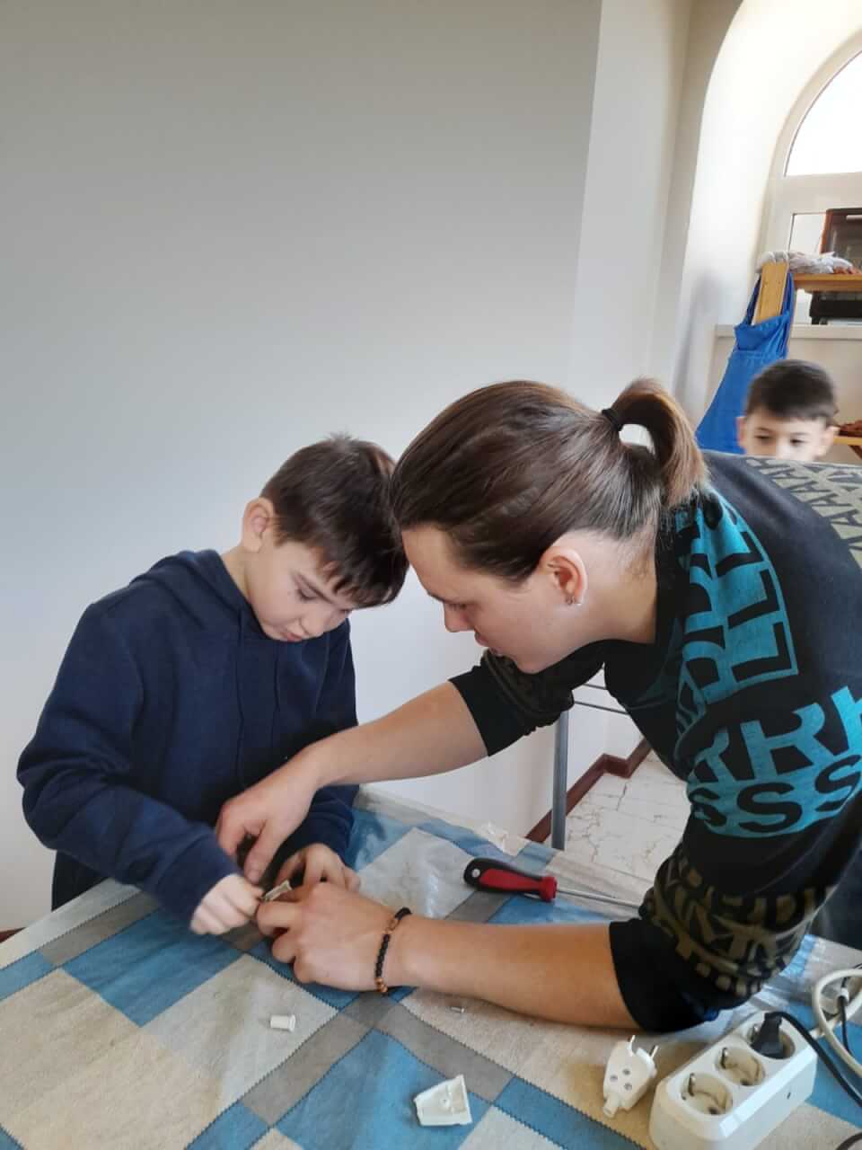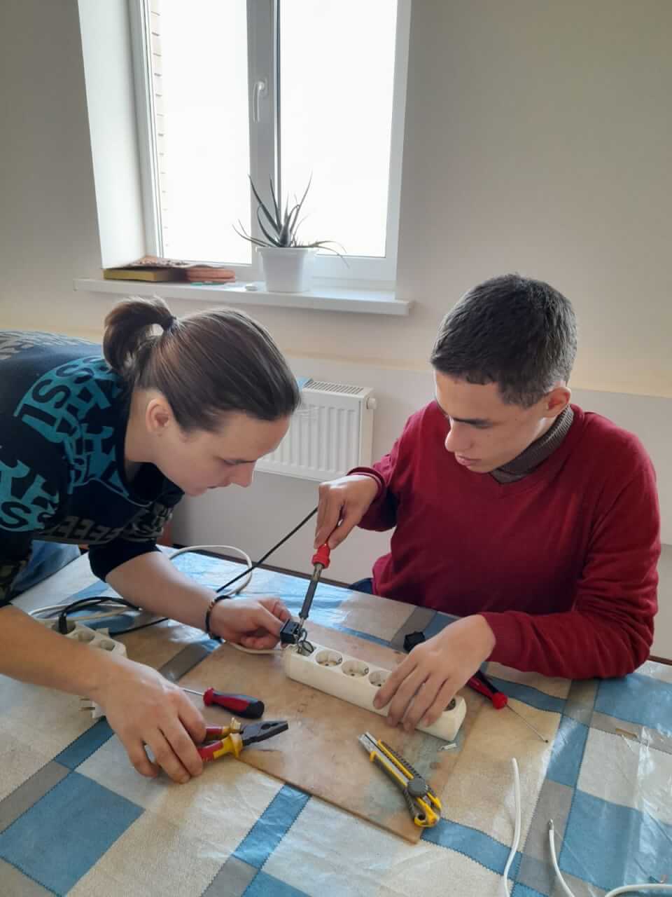 Особенные мальчишки вместе с преподавателем уже во всю чинят, паяют и собирают разные сложные штуки! А еще планируют научиться работать по дереву и разбираться в сантехнике. Мастерская для мальчиков — это очень важные занятия для наших подопечных. У кого-то нет папы, а у кого-то он вынужден много работать. Поэтому здесь юноши и мальчишки не только становятся самостоятельными, но и получают то мужское внимание, которого многим из них не хватает.