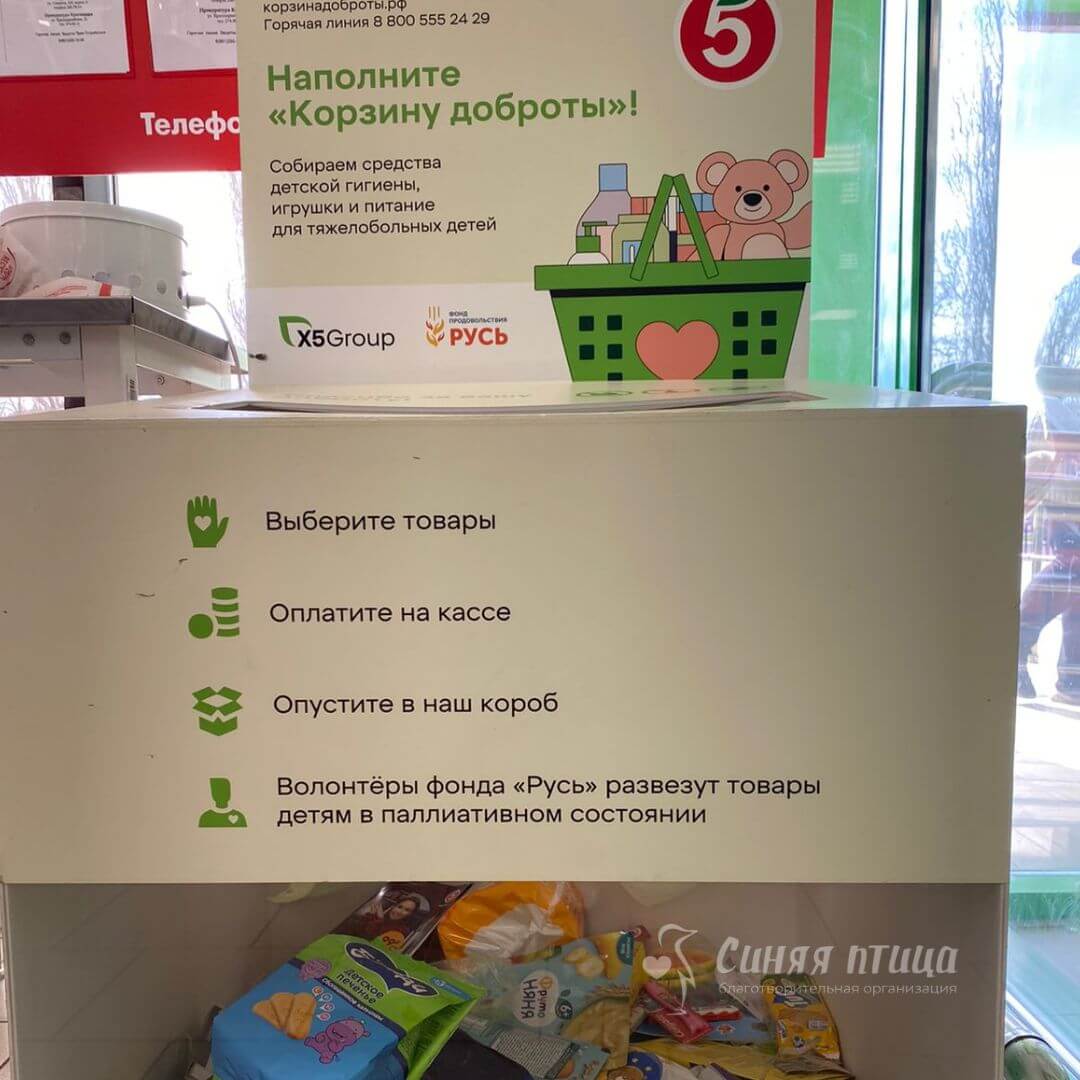 Уже два года как мы, совместно с компанией X5 Group, собираем средства гигиены и специальное питание для детей в паллиативном состоянии в магазинах сети «Пятерочка». В этом году к нашей работе присоединился фонд «Русь. Наша цель — помочь детям, столкнувшимся с тяжелым заболеванием, и их семьям.