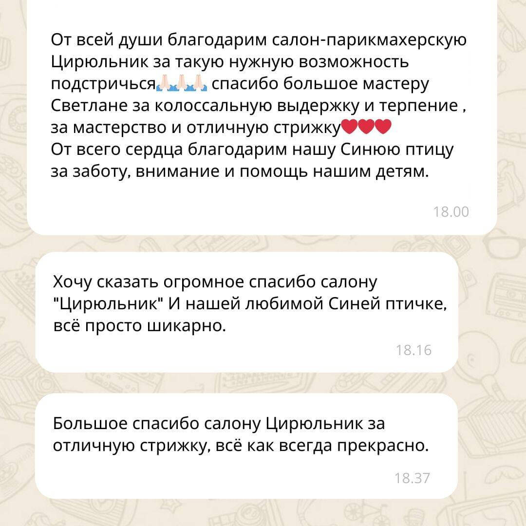 В рамках программы «Добрый брадобрей» мы не первый год сотрудничаем с «Цирюльник» и благодарим их за такую возможность для особенных детей. Семьи, воспитывающие особенных детей, благодаря проекту получают возможность бесплатно посещать парикмахерские города, что является существенным подспорьем и способом социализации для ребят.