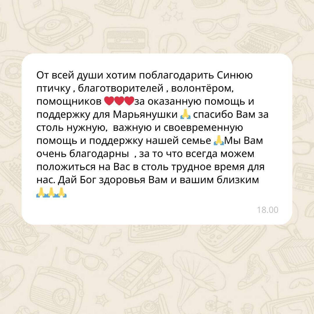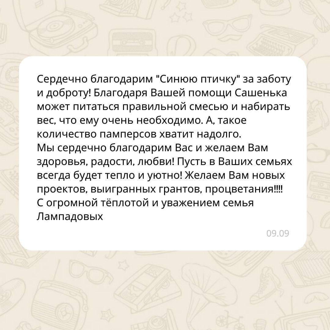 Родители наших подопечных от всей души благодарят за такую важную и жизненно необходимую поддержку. Поддержка Фонда и забота оказывают огромное влияние на их жизнь и помогают им справиться с трудностями. Мы очень гордимся тем, что вместе с БФ «Помощь рядом» можем делать такую важную и значимую работу. Спасибо за ваше доброе сердце и веру в нашу организацию. Мы продолжаем двигаться вперед и стремимся помочь всем, кто в этом нуждается.