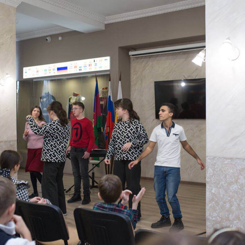 18 декабря на территории общественно-информационного центра г. Краснодара прошёл инклюзивный концерт «Добрый новый год» с участием воспитанников Яблоновской Детской школы искусств и подопечных Синей птицы.