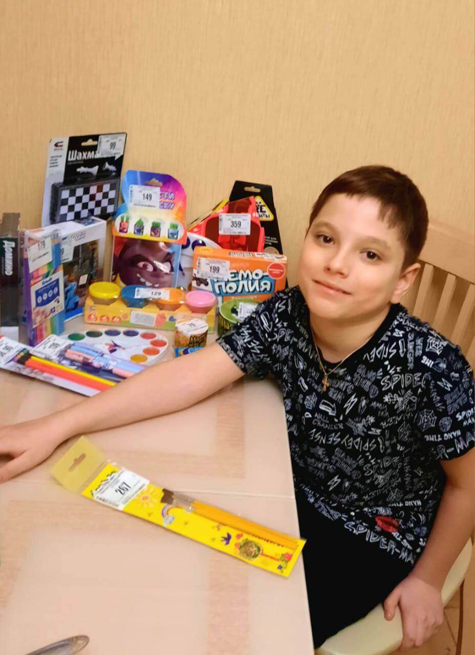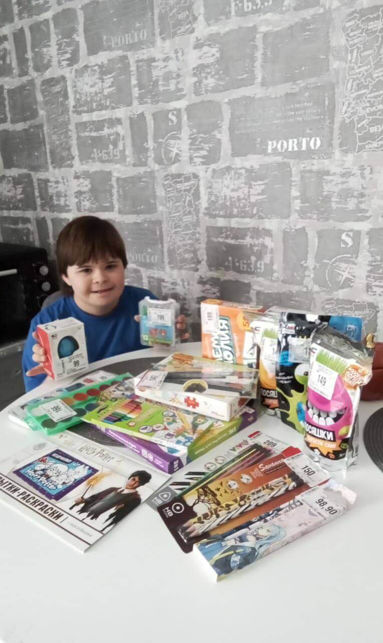 Наши юные подопечные, а также их братики и сестрички получили развивающие наборы, благодаря которым приступили к творчеству для своих родных и близких. Рисунки, поделки, газоны — фигурки, новые модели машин и замков из конструктора, игрушки и книги – все это ребята получили благодаря поддержке и заботе благотворительного фонда «Детский мир».