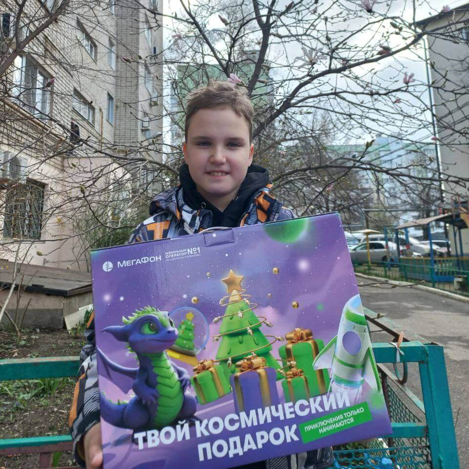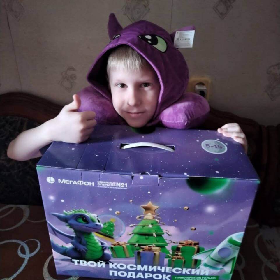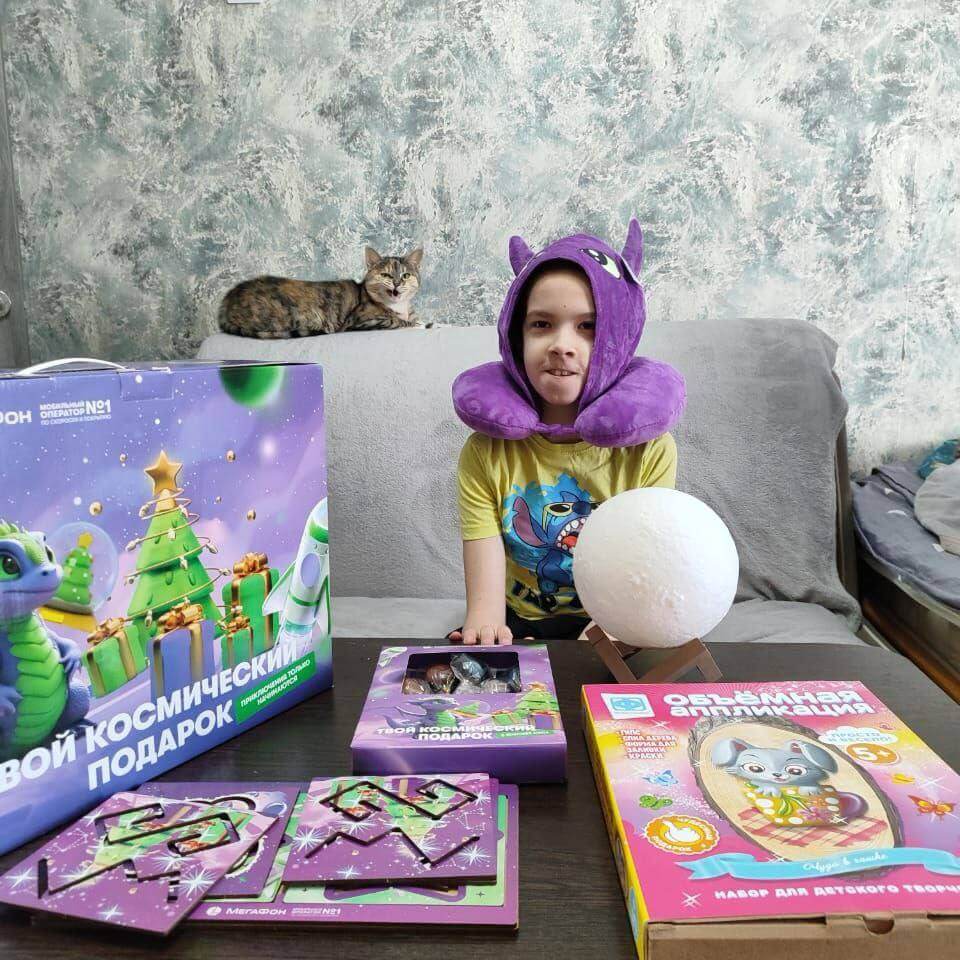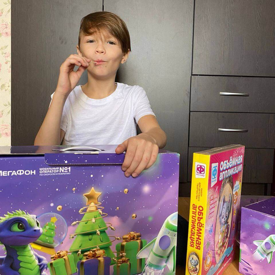 «Огромное спасибо компании Мегафон и Синей птичке за такой приятный сюрприз! Макар оценил и благодарен за нужные и интересные подарки!».