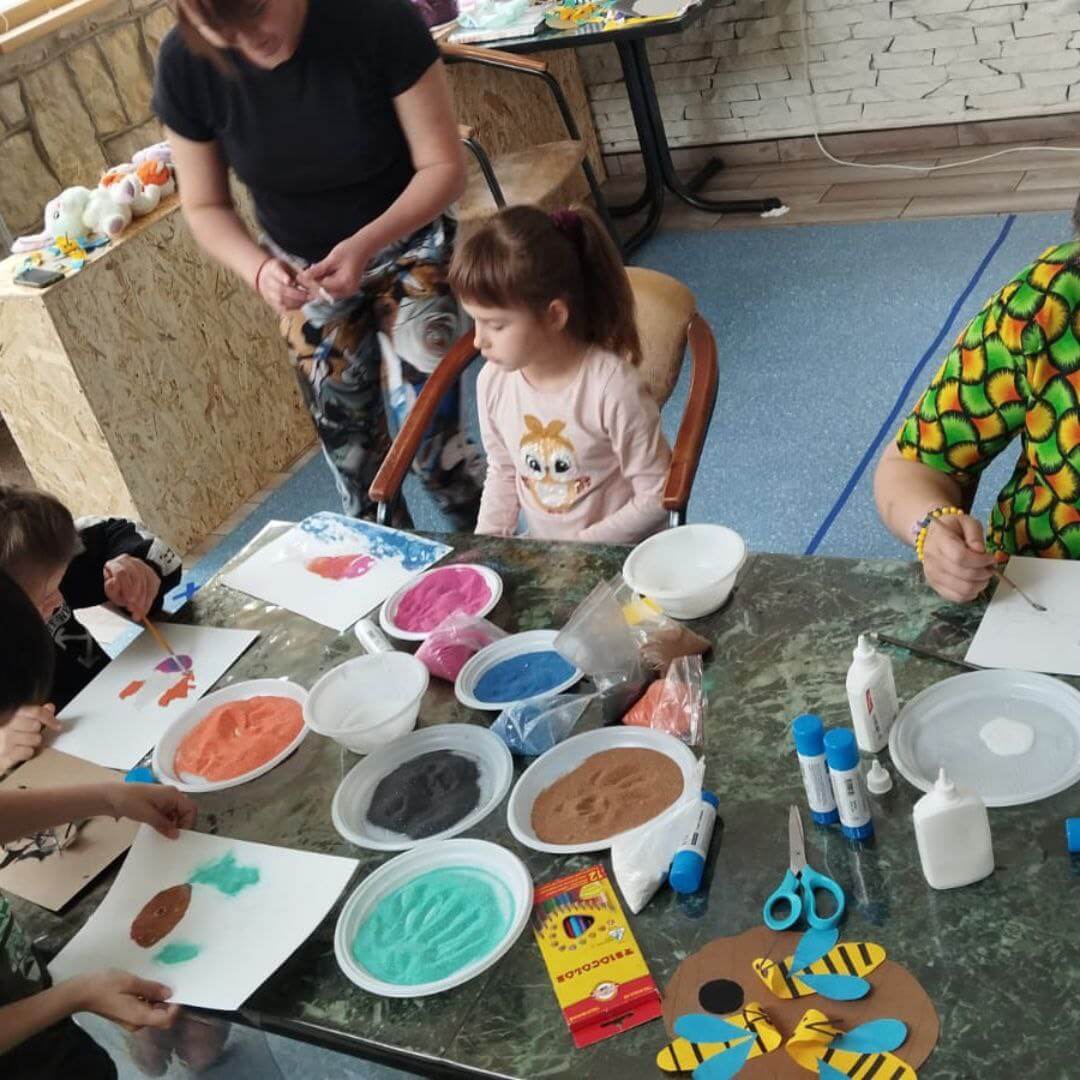 На занятиях по психологии ребята рисуют цветным песком и таким образом: