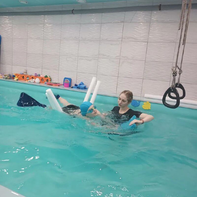 Наша юная русалочка уже в бассейне. После перенесённой болезни Лера потеряла способность видеть и сейчас познает мир на ощупь, а диагноз «эпилепсия» ограничил варианты двигательной активности. Но вот плавать ей — можно и сама Лера очень это любит. Кроме того, занятия помогают ей контролировать вес, который склонен расти из-за приема противосудорожных препаратов и гормональной терапии.