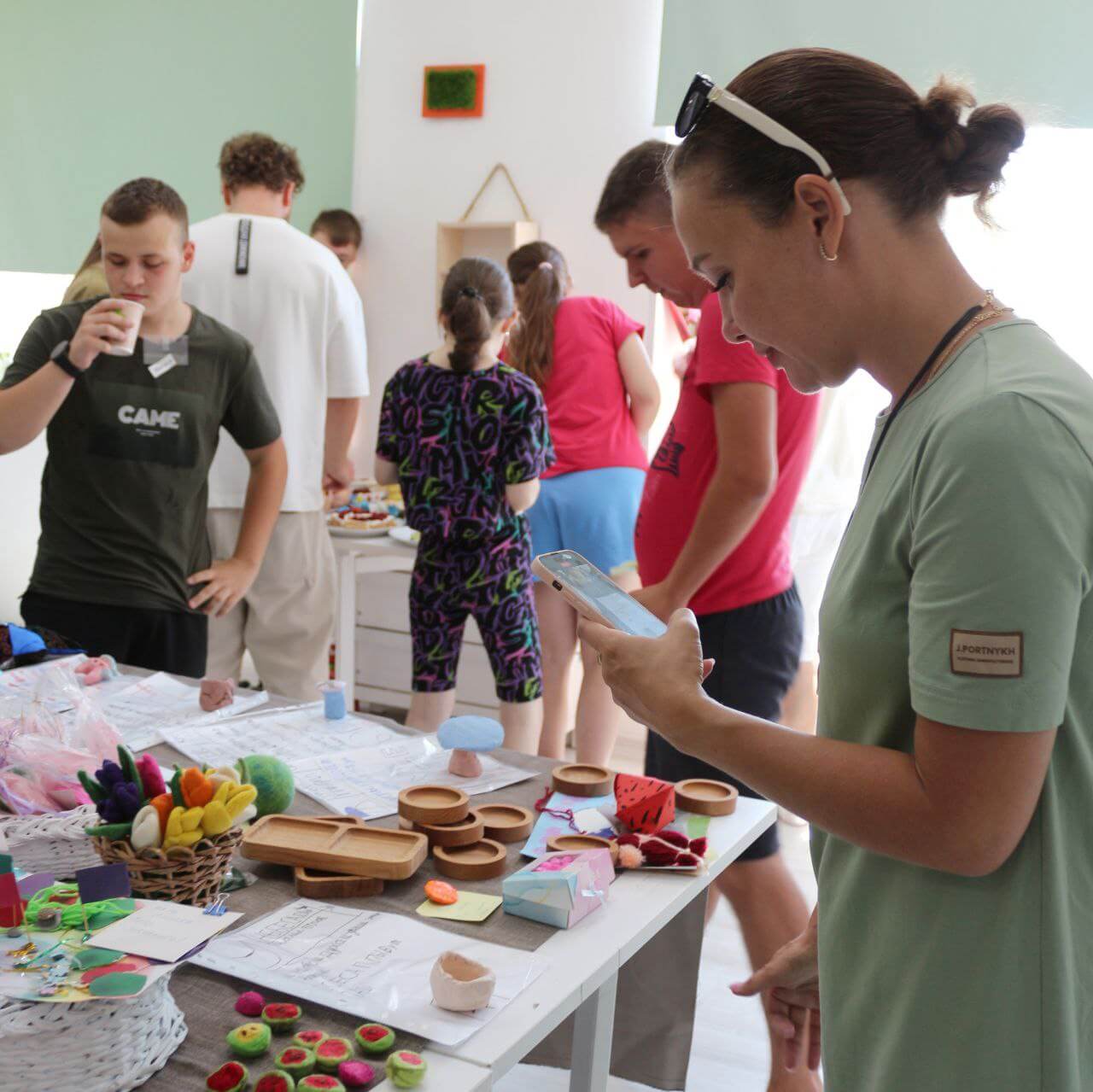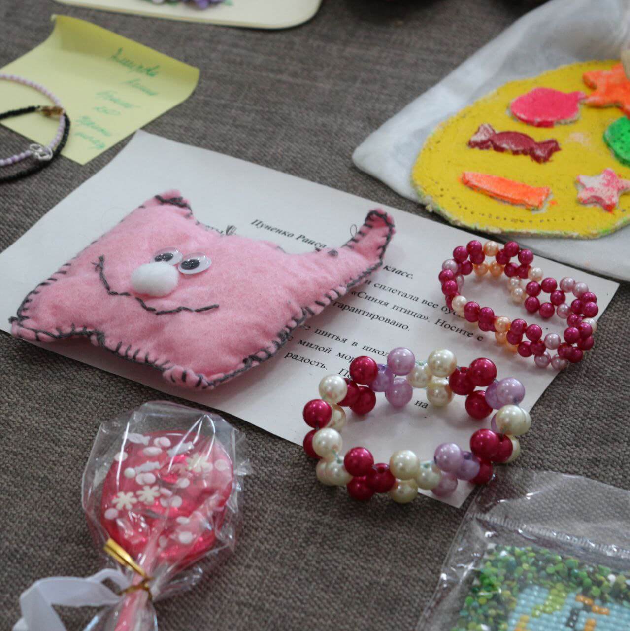На выставке можно было увидеть браслеты из кожи, бисера или бус, кошельки, значки из полимерной глины, вязаные и плетённые корзины, мыло, свечи, картины и многое другое. Все это ребята подготовили в рамках творческих мастер-классов и занятий в центре «Верь в себя».