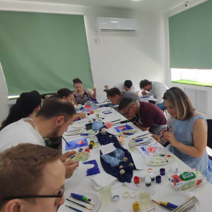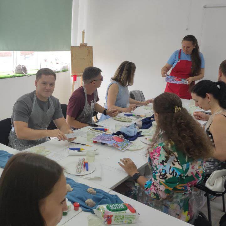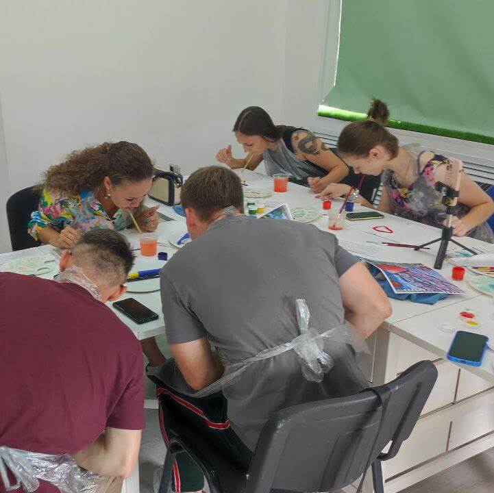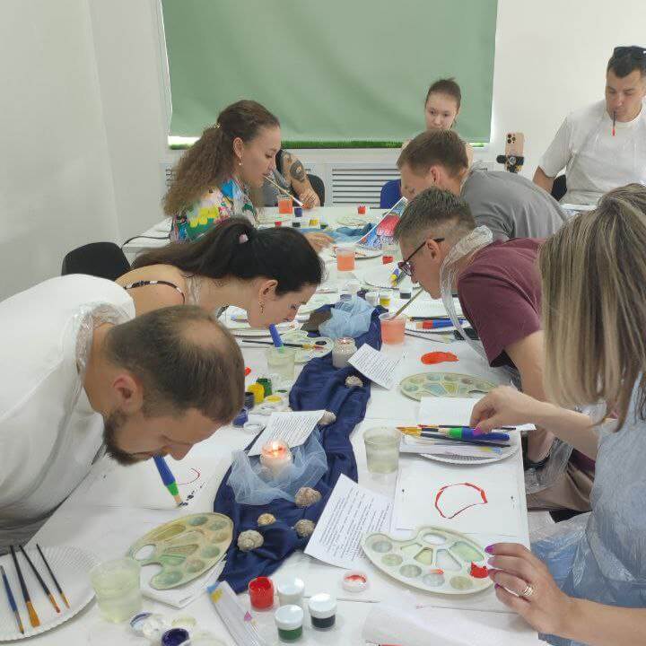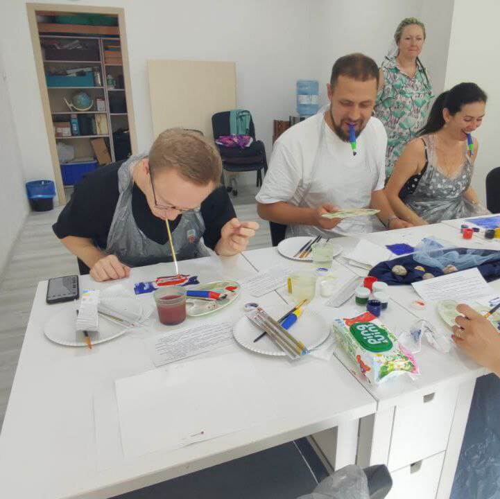 для группы предпринимателей — благотворителей провела наша художница, Ира Торгашева. И если вам все еще казалось, что рисовать кисточкой в зубах — легко, просто взгляните на фото в карусели. впрочем, сложность вполне компенсируется забавным процессом) На этот раз рисовали яркое и милое изображение с сердечком. Благодарим участников за удалённое время, внимание и надеемся на дальнейшее сотрудничество!