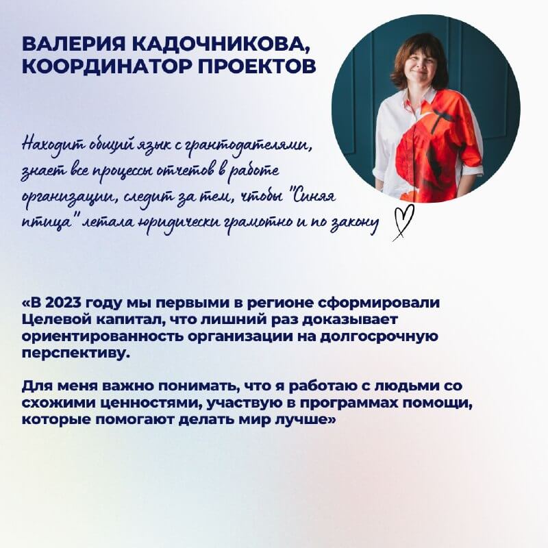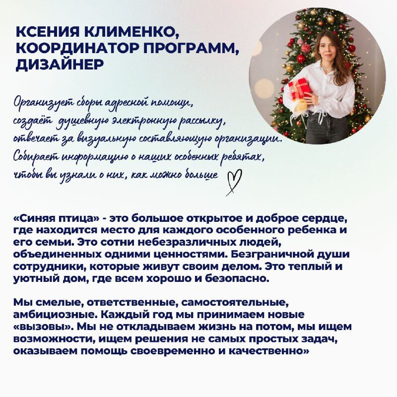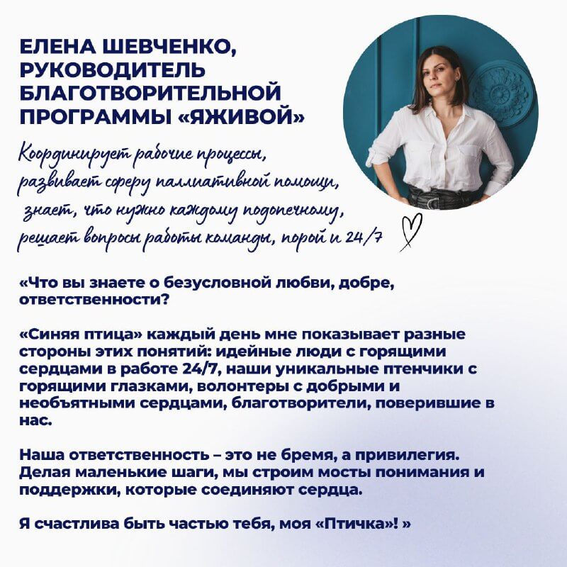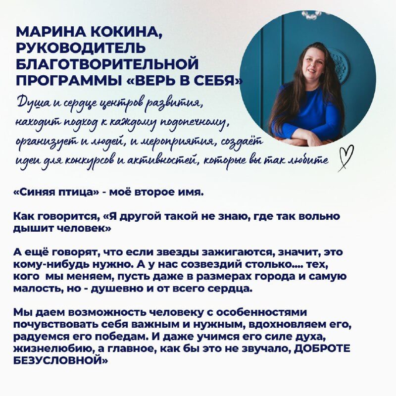 Пользуясь случаем, мы решили представить вам тех, кто обычно остаётся «за кадром» добрых дел, а заодно спросили: «Что для тебя значит «Синяя птица» и что ты хотел бы ей пожелать?»