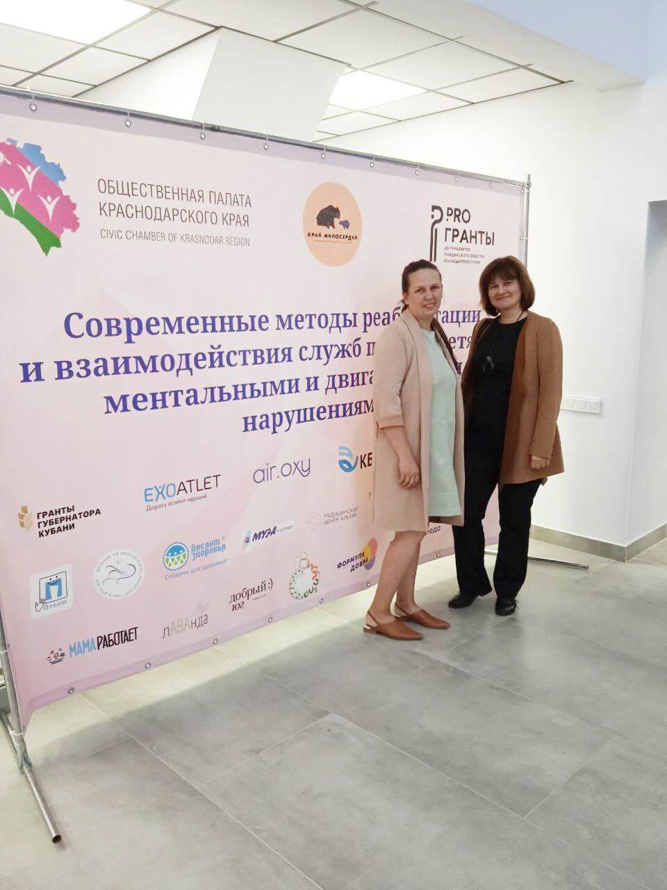 - Марина Кокина, руководитель благотворительной программы «Верь в себя» и Валерия Кадочникова, координатор проектов, посетили конференцию «Современные методы реабилитации и взаимодействия служб помощи детям с ментальными и двигательными нарушениями»;