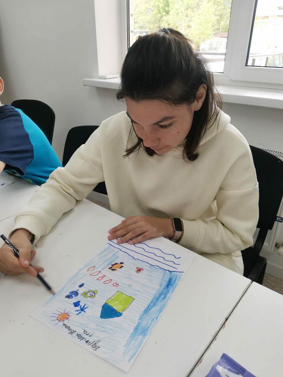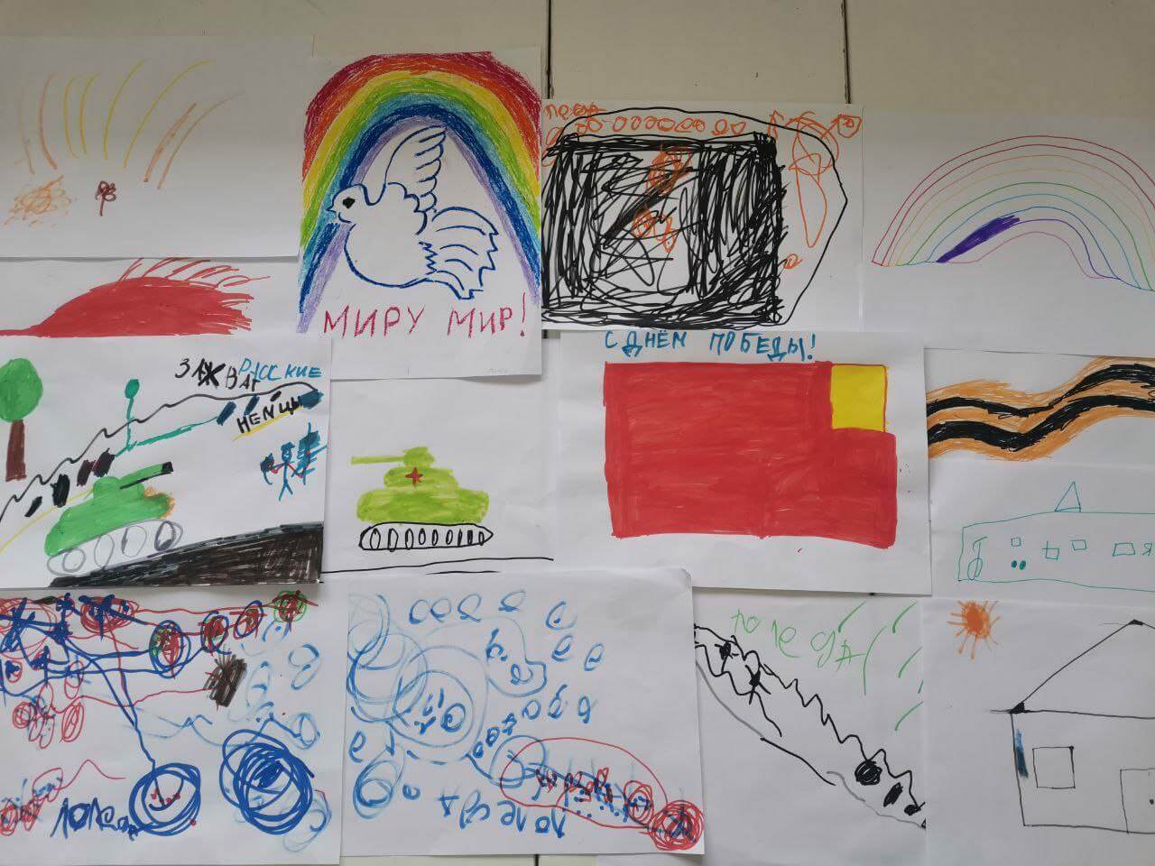 — Девчонки Настя, Вероника, Катя, Лиза и Рая создавали картины мирного неба, радужных цветов и мирных улиц. Так они символизировали мир, ожидающий возвращение солдат домой.