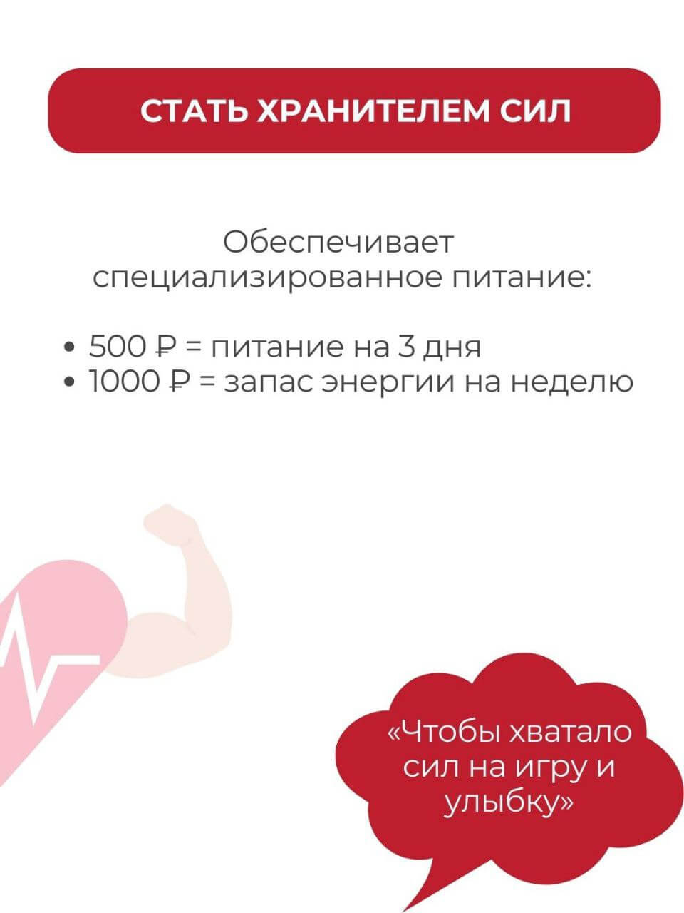 500 ₽ = питание на 3 дня