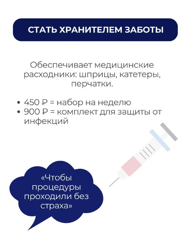 ХРАНИТЕЛЬ ЗАБОТЫ — обеспечивает медицинские расходники. Чтобы каждая процедура проходила безопасно и без страха.