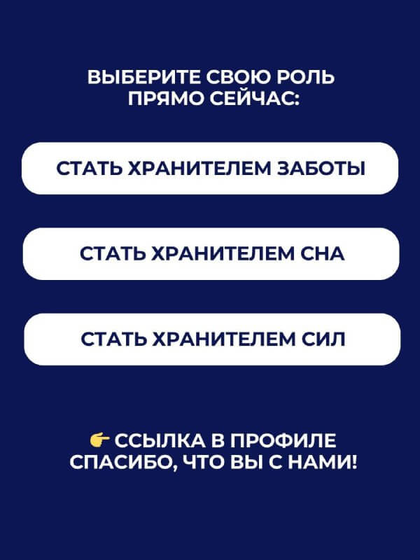 Мы придумали простую механику. Вы выбираете роль, которая откликается вашему сердцу: