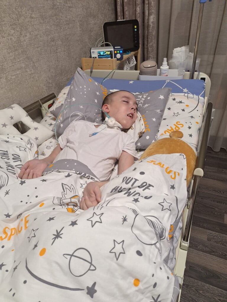 Сегодня у Семы гастростома, трахеостома, недавно он вернулся домой после очередного пребывания в реанимации с аппаратом ИВЛ. Мальчику и его родным сейчас особенно необходима помощь. Подгузники, влажные салфетки и пелёнки — это те простые вещи, которые позволяют Семе спокойно спать без боли и раздражения, поддерживать гигиену, переживать смены положения тела без лишнего дискомфорта. Это основа его ежедневного ухода, без которой невозможно сохранить здоровье и избежать осложнений.