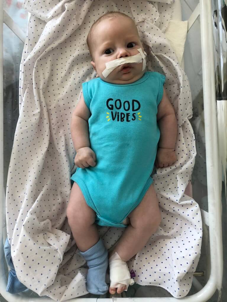 У мальчика не получается глотать. Поэтому мама кормит его через специальный зонд. Она в ускоренном режиме научилась им пользоваться и делать все необходимые процедуры.