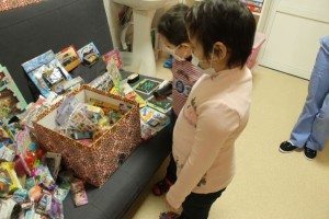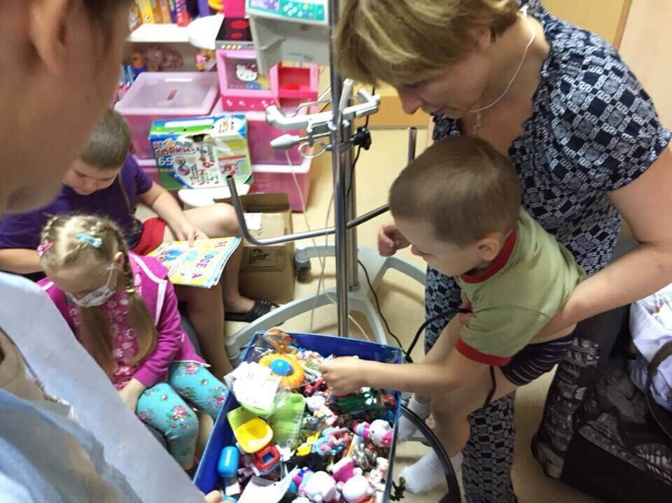 Суть акции: в отделениях стоят специальные боксы «Коробочки храбрости» и когда малыш прошел болезненную процедуру (а в этом отделении их немало) — он берет себе не выбирая, на ощупь одну из игрушек в награду за смелость и терпение. Когда, вдруг, игрушки заканчиваются, мы стремимся как можно быстрей пополнить коробочку. Хотелось бы бывать в больнице почаще, но это не всегда получается.