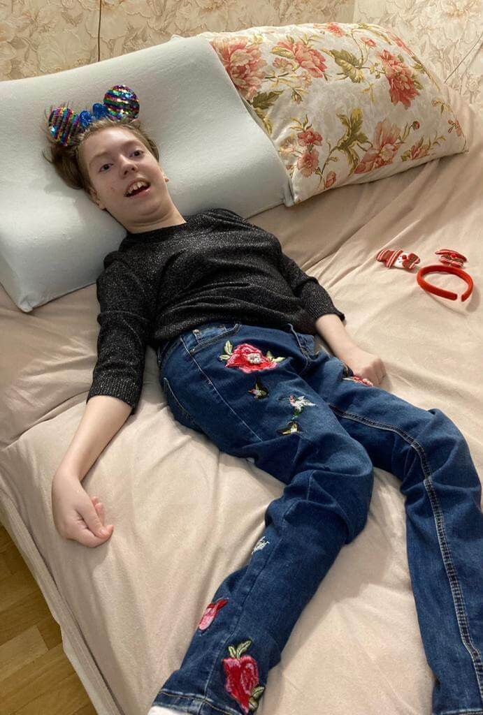 Из-за неправильных родов Соня с рождения прикована к кровати. Она любознательная, добрая и очень ласковая. Девушка любит слушать аудиорассказы, проводить время с мамой, и старается выговаривать некоторые слова.