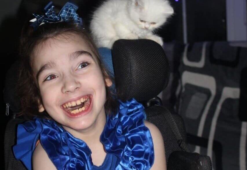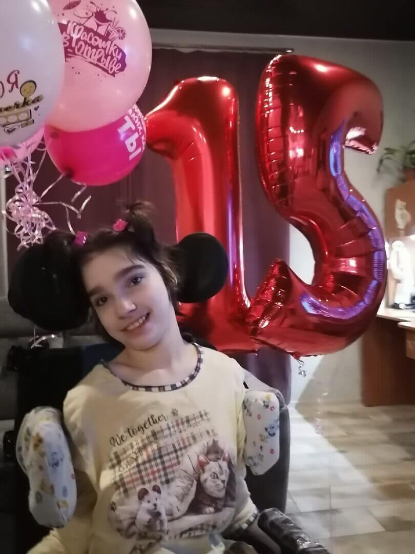 В окружении любви и заботы родителей Яне исполнилось уже 15 лет. Девушка не может самостоятельно сидеть, держать голову и даже кушать. Но Яна всегда была общительным, любознательным и открытым ребёнком. Она дистанционно учится, любит уроки природоведения и обожает животных.